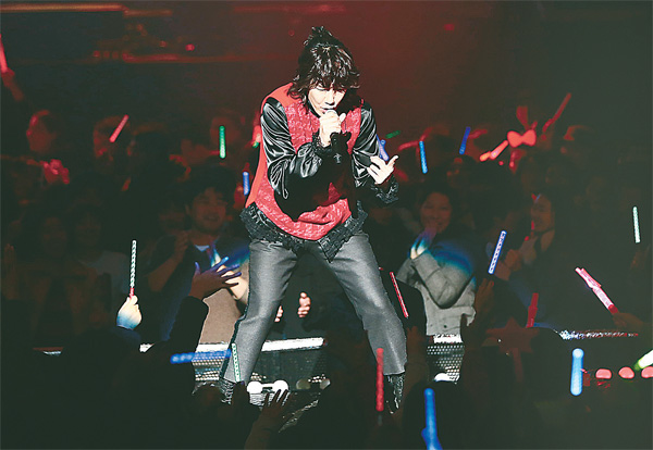 가수 김장훈이 21일 서울 송파구 잠실 실내체육관에서 열린 단독 콘서트‘김장훈의 원맨쇼 아듀’에서 열정적인 무대를 펼치고 있다.