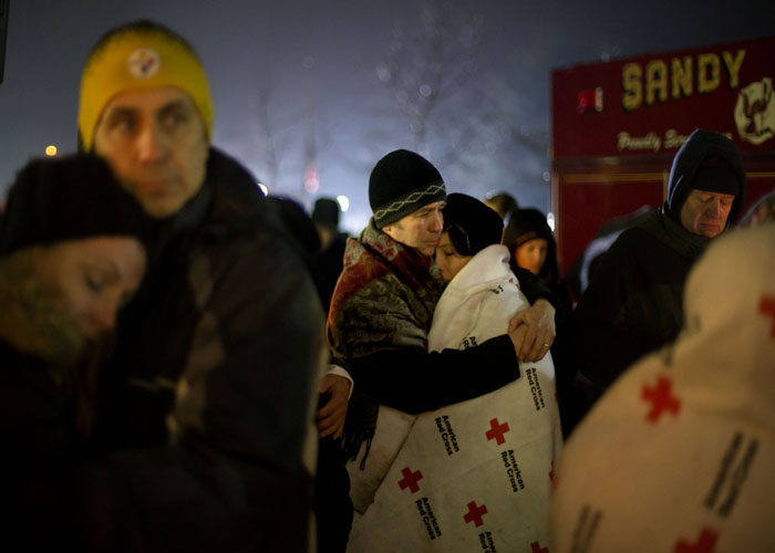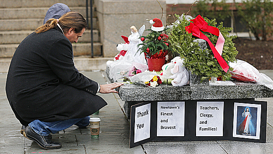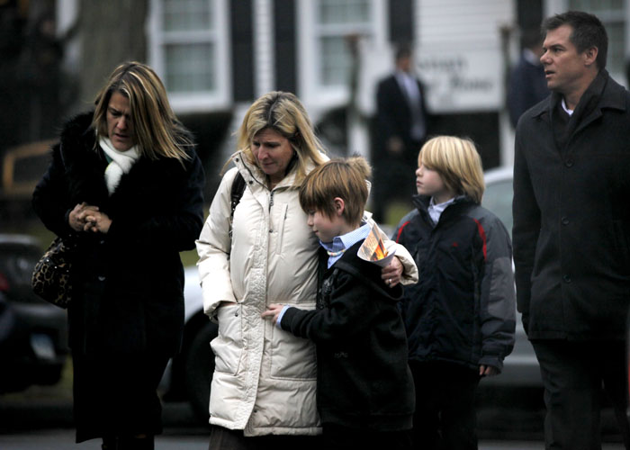 지난 14일 코네티컷주 뉴타운에서 발생한 초등학교 총기난사 사건으로 희생된 잭 핀토(6세)군의 장례식이 희생자들중 첫번째로 17일 거행됐다. 장례식에 참석했던 추모객들이 슬픈 표정으로 장례식장을 떠나고 있다.