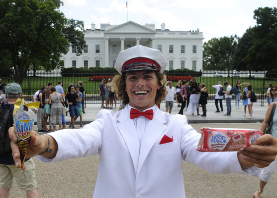 굿휴머 조이 스퀘드가 지난 4일 ‘웰컴 투 조이후드’ 투어 차 워싱턴 DC의 연방의회 의사당에 도착해 아이스크림을 나눠주고 있다.