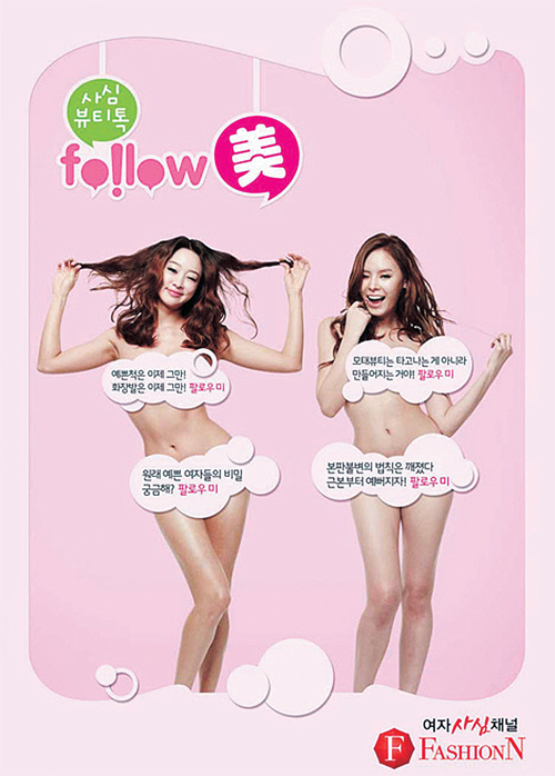 케이블 채널 패션앤의 신개념 뷰티 토크 쇼‘ 팔로우미’(follow 美)의 MC를 맡은 최여진과 구은애의 우월한 몸매가 드러나는 포스터가 공개됐 다.