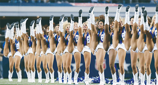 달라스 카우보이스 치어리더들이 필라델피아 이글스와의 홈경기 하프타임에 나와 활달한 율동을 보여주고 있다.