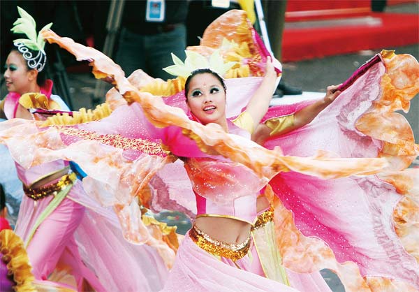 대만 타이베이에서 10일 열린 건국 기념일 행사에서 대만 학생들이 공연하고 있다.