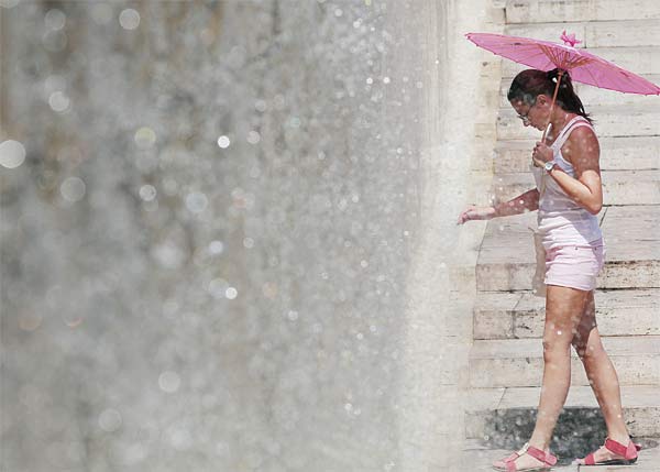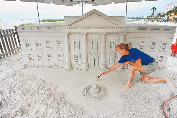 플로리다 트레저 아일랜드에서 열린 모래조각 경연대회에서 22일 모래조각가가 자신이 만든 모래조각품을 마지막 손질하고 있다.
