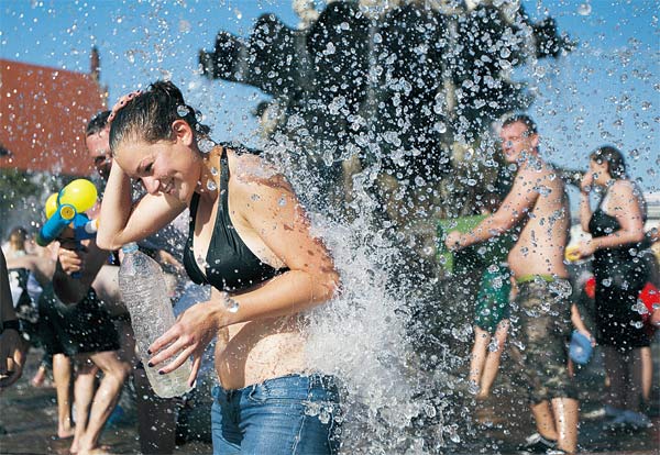 18일 오후 패사디나 ‘포에버 21’ 매장에서 열린 싸이 강남스타일 플래시몹 행사에 참석한 팬들이 환호성을 지르며 춤을 추고 있다.